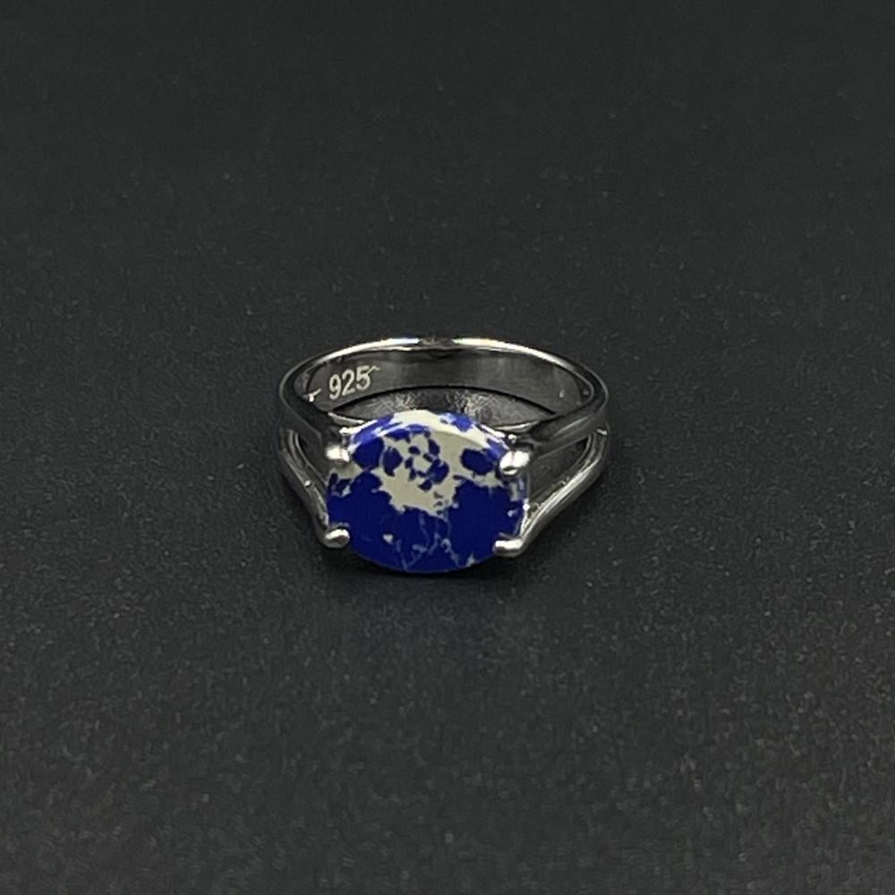 خاتم ملكي فضة عيار 925' كحلي معرق.