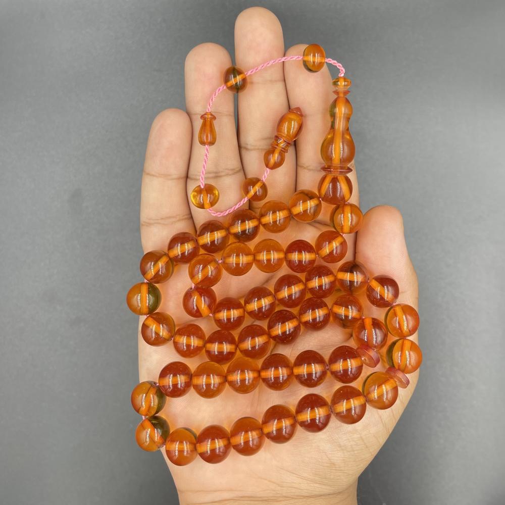 سبحة بكلايت عسلي شفاف تمليكة. تتميز بلونها العسلي الشفاف الذي يجمع بين الدفء والنقاء، مما يمنحها مظهرًا هادئًا وأنيقًا. تصميمها البسيط والمميز يجعلها خيارًا مثاليًا لمن يبحثون عن تجربة تسبيح راقية وفاخرة.